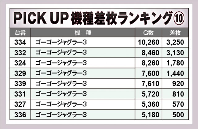 上表に取り上げた10機種は、いずれも店内を包み込む熱気を形成した機種と言える。その中で万枚OVERや大台突破台が生まれているわけだが、特筆すべきは、どの機種も高い回転数をマークしている点だ。特に『ゴーゴージャグラー3』は万回転OVERを達成しており、8~9,000回転OVERを記録した台も多いことから、ファンは相当な手応えを感じていたのは間違いない。
