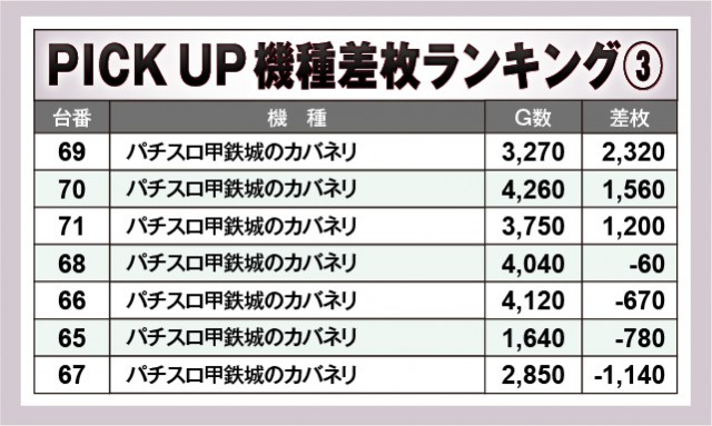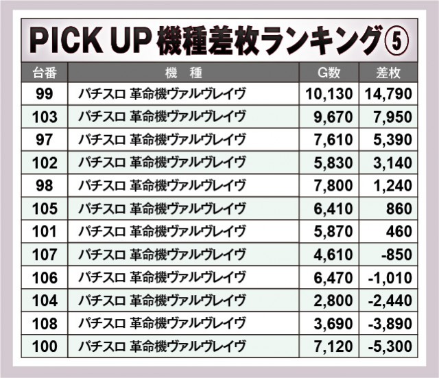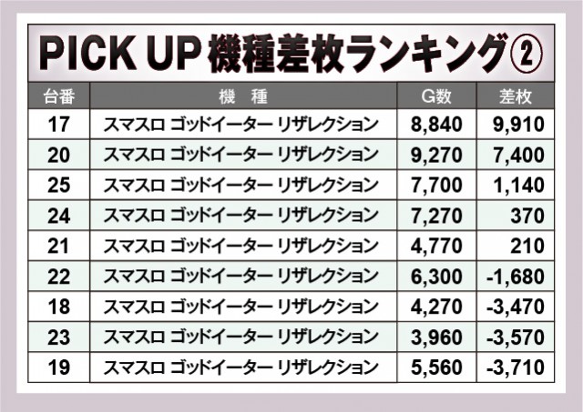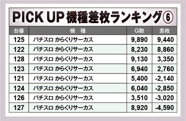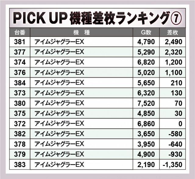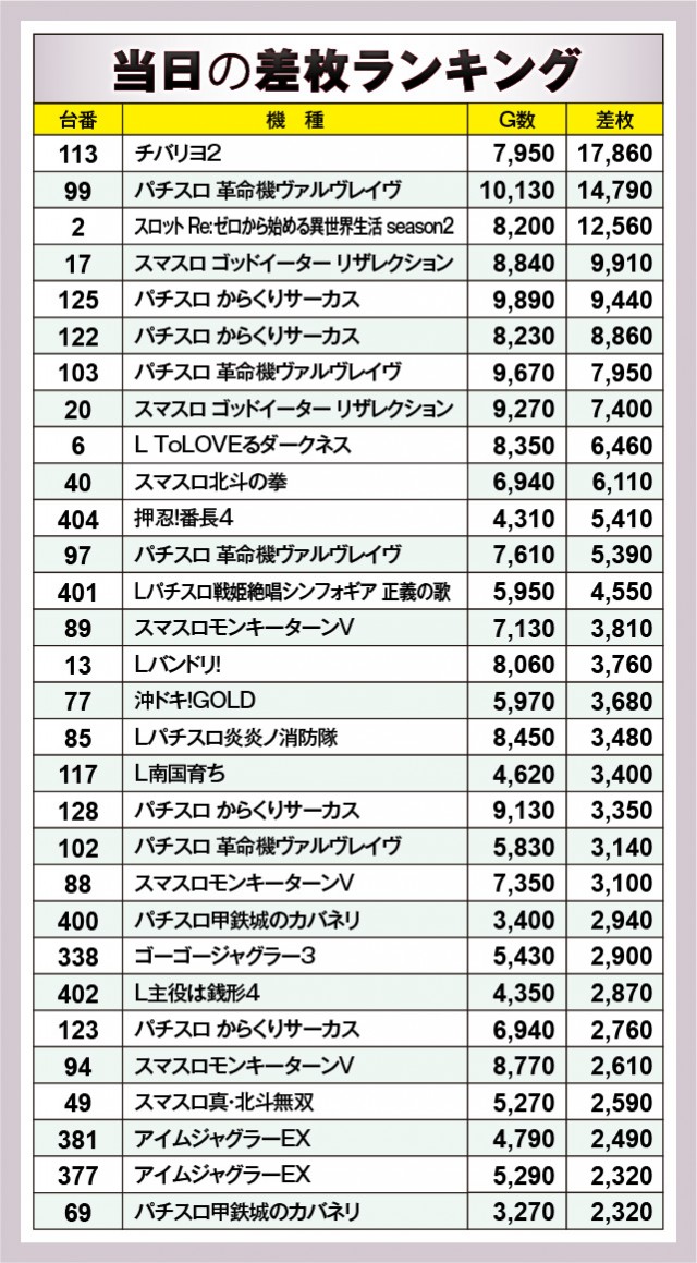 ※差枚数順に掲載しています。