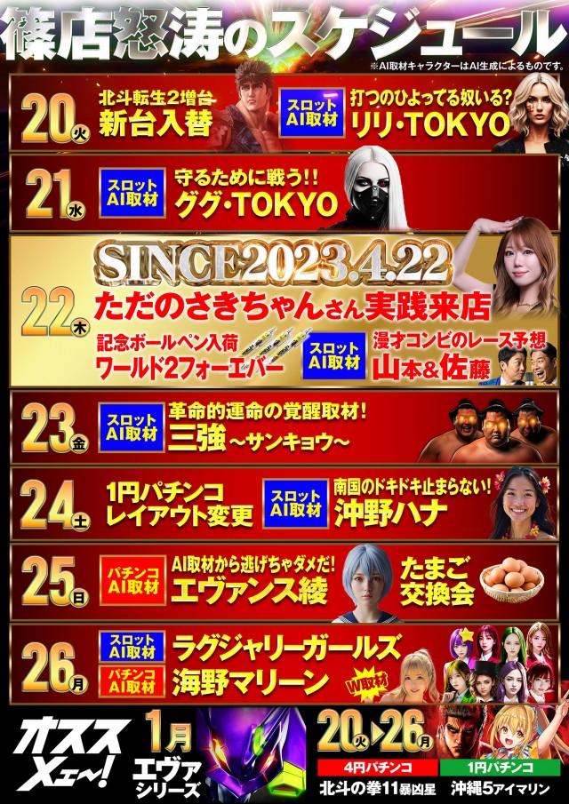 [パチ] 4円:129台 1円:120台 [スロ] 46枚スロ:202台 計451台 |