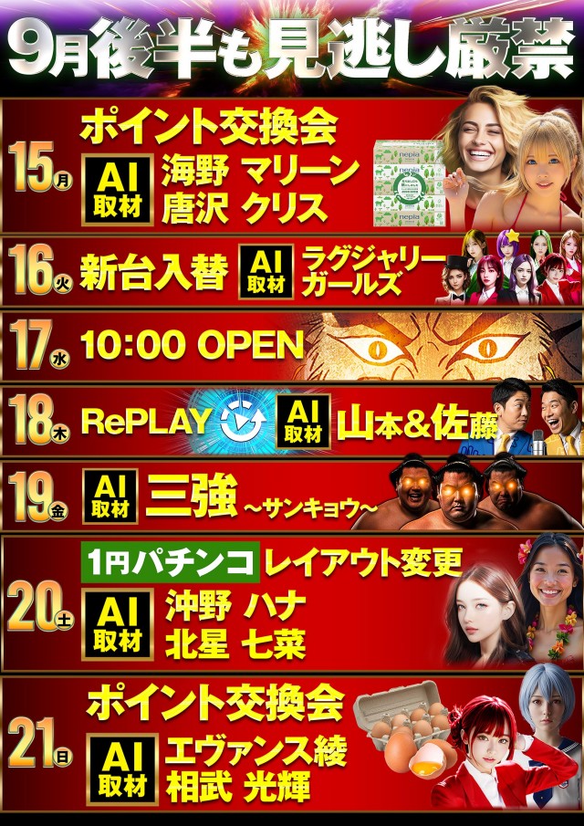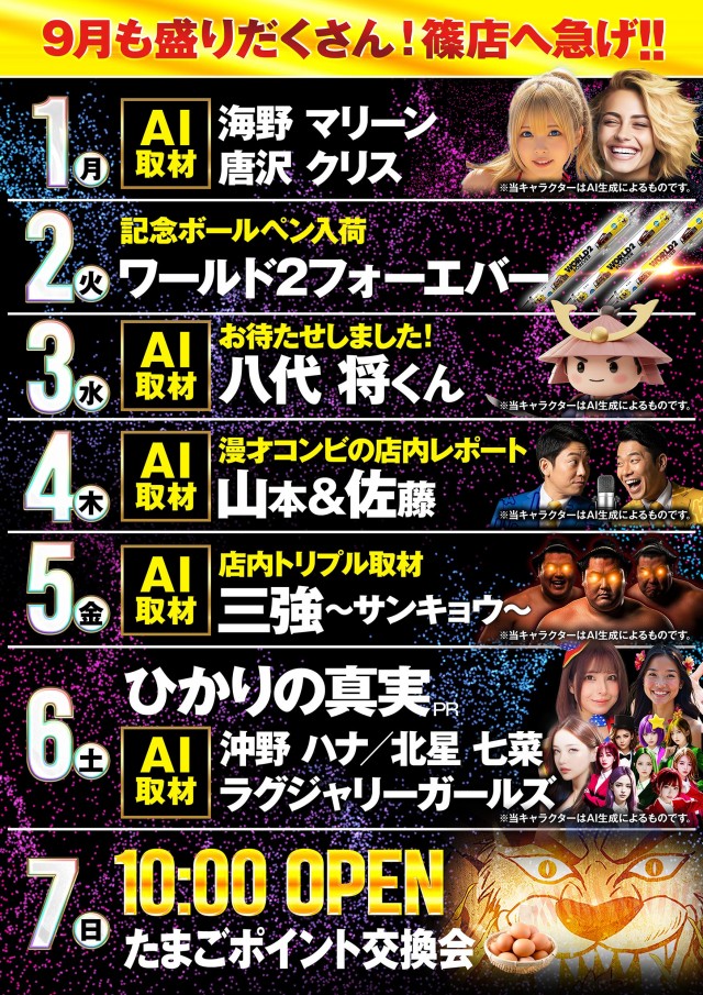WORLD 篠店より重要なお知らせ。明日も必ずご来店下さい!