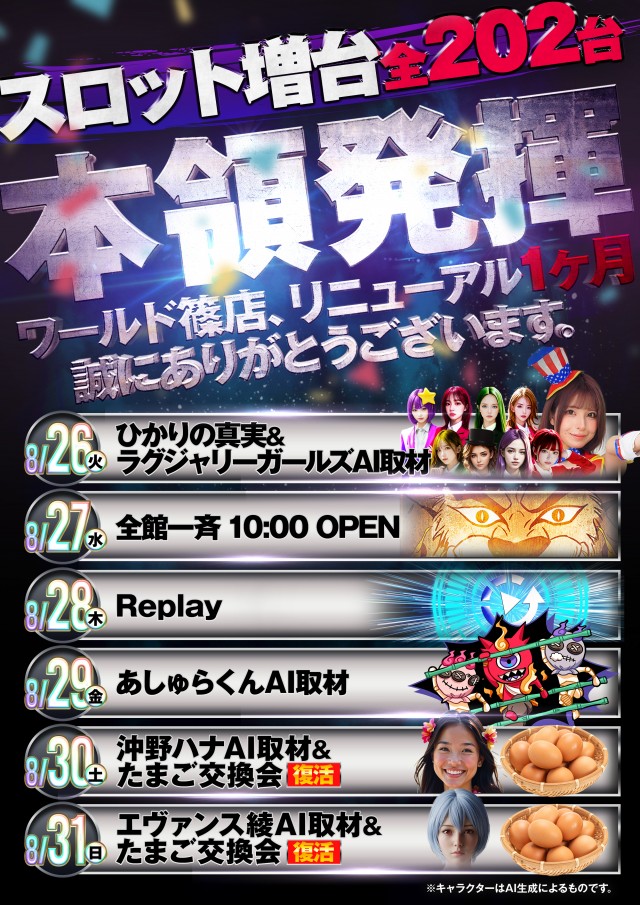 WORLD 篠店より重要なお知らせ。必ずご覧下さい!