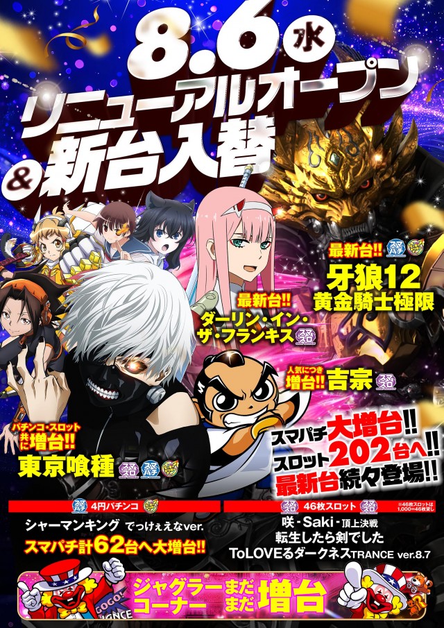 [パチ] 4円:129台 1円:120台 [スロ] 46枚スロ:202台 計451台 |