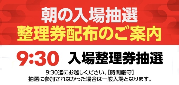 <<遅刻厳禁>> 整理券抽選は9時30分から!