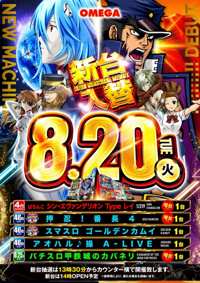 8月20日(火) 新台入替!