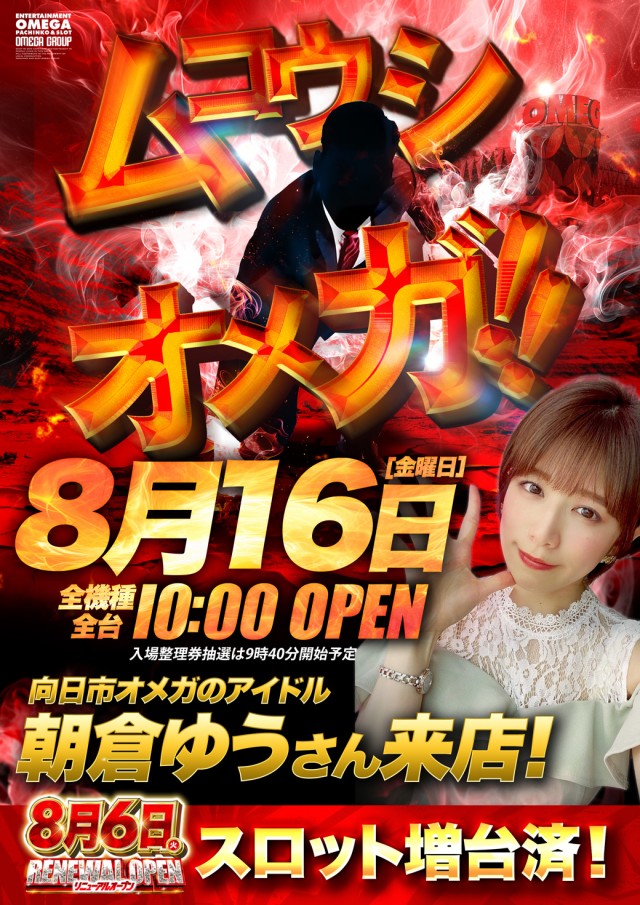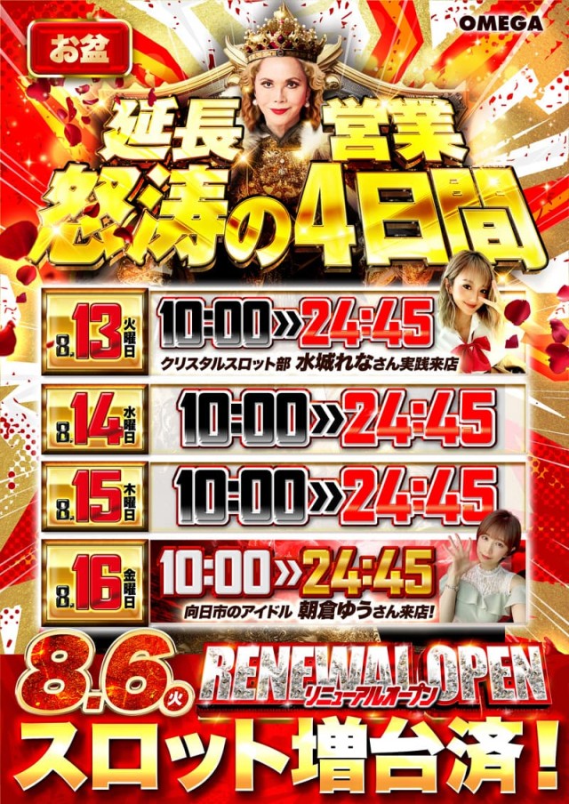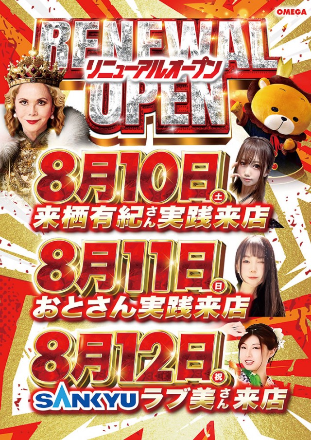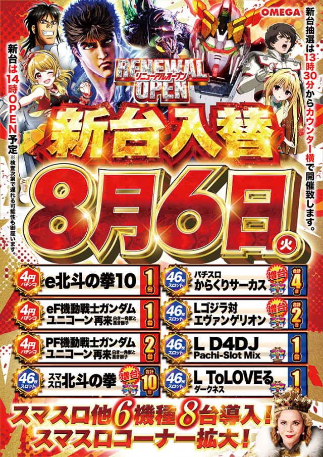 8月6日(火) リニューアルオープン!46枚スロット増台!