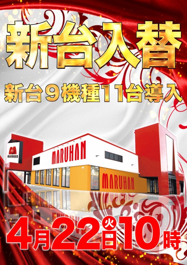 本日、4月22日★新台入替★朝10時開店★新台13:30~