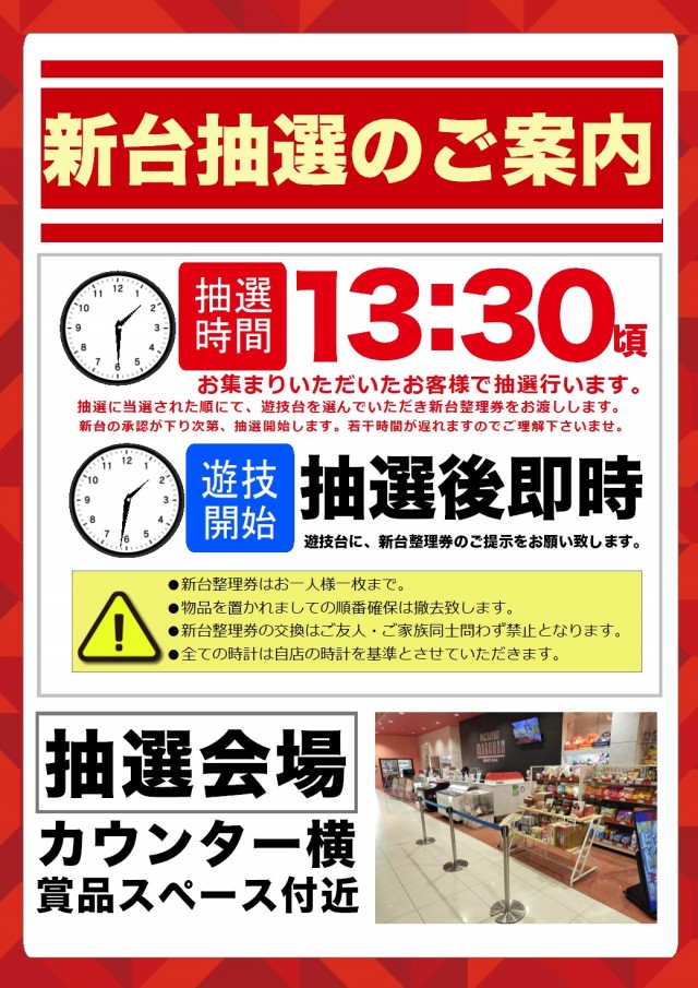 明日、2月18日★新台入替★朝10時開店★新台13:30~