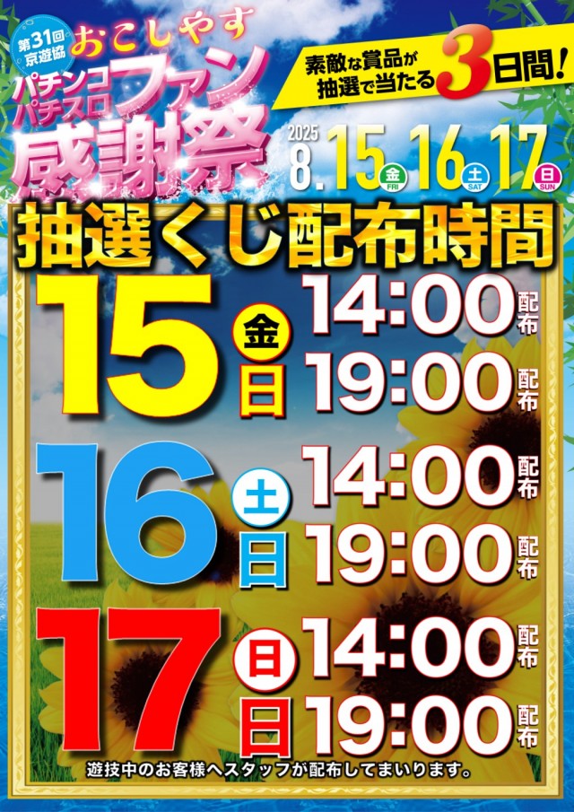★マルハン峰山店★【ファン感謝デー】8月15.16.17日連日10時開店