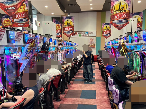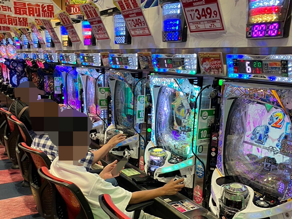 取材時は既に多くのプレイヤーが集結し、パチンコ・パチスロを問わずにぎやかな状況となっていた。