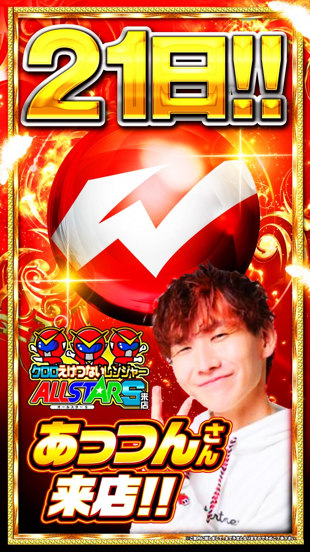 明日1月21日(水)💥あっつんさん来店予定💥朝8時30分抽選