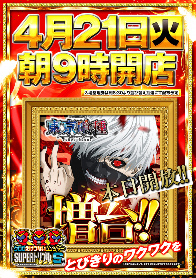 4月21日💥スマスロ喰種増台💥朝9時開店/8時30分抽選