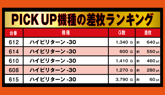 『ハイビリターン-30』の注目度も高い。回転数が増えていればさらにプラスptも伸びたに違いない。