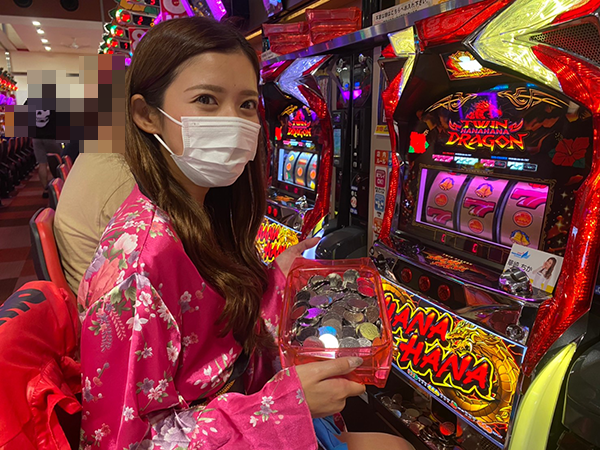 いろいろな機種があるなかから、パチスロの「ツインドラゴンハナハナ‐30」を選んで実戦開始★