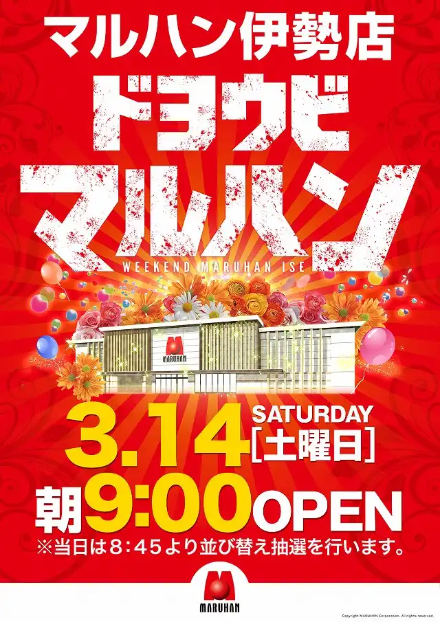 3月17日(金)三重マルハン全店合同営業!朝9時開店