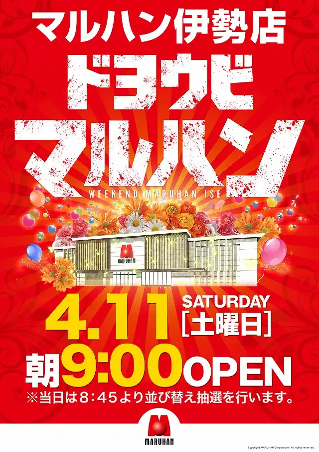 3月27日(月)三重マルハン全店合同営業!朝9時開店