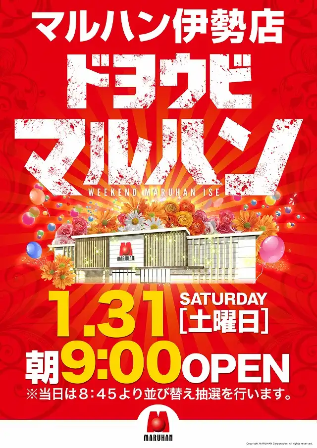 1月27日(金)三重マルハン全店合同営業!朝9時開店
