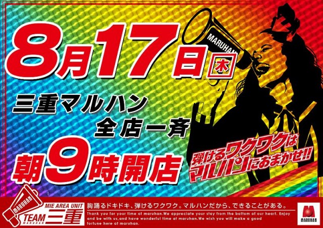 週末も是非マルハンへ!8月19日(土)あさ9時開店!