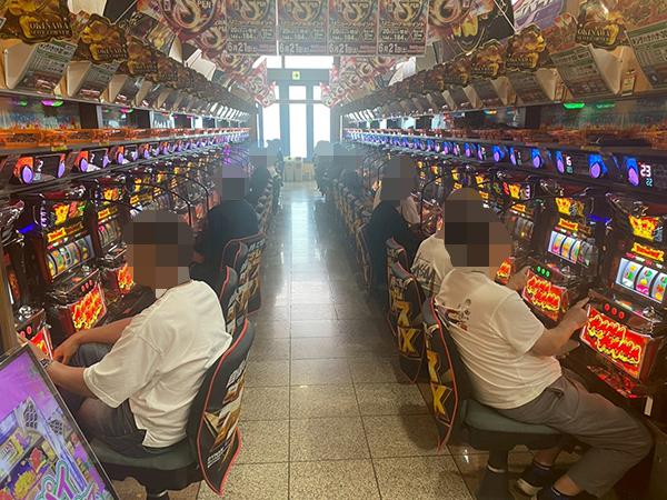 5.435円パチスロに目を移すと、楽しそうにレバーを叩くプレイヤーの姿が至る所で見られた。