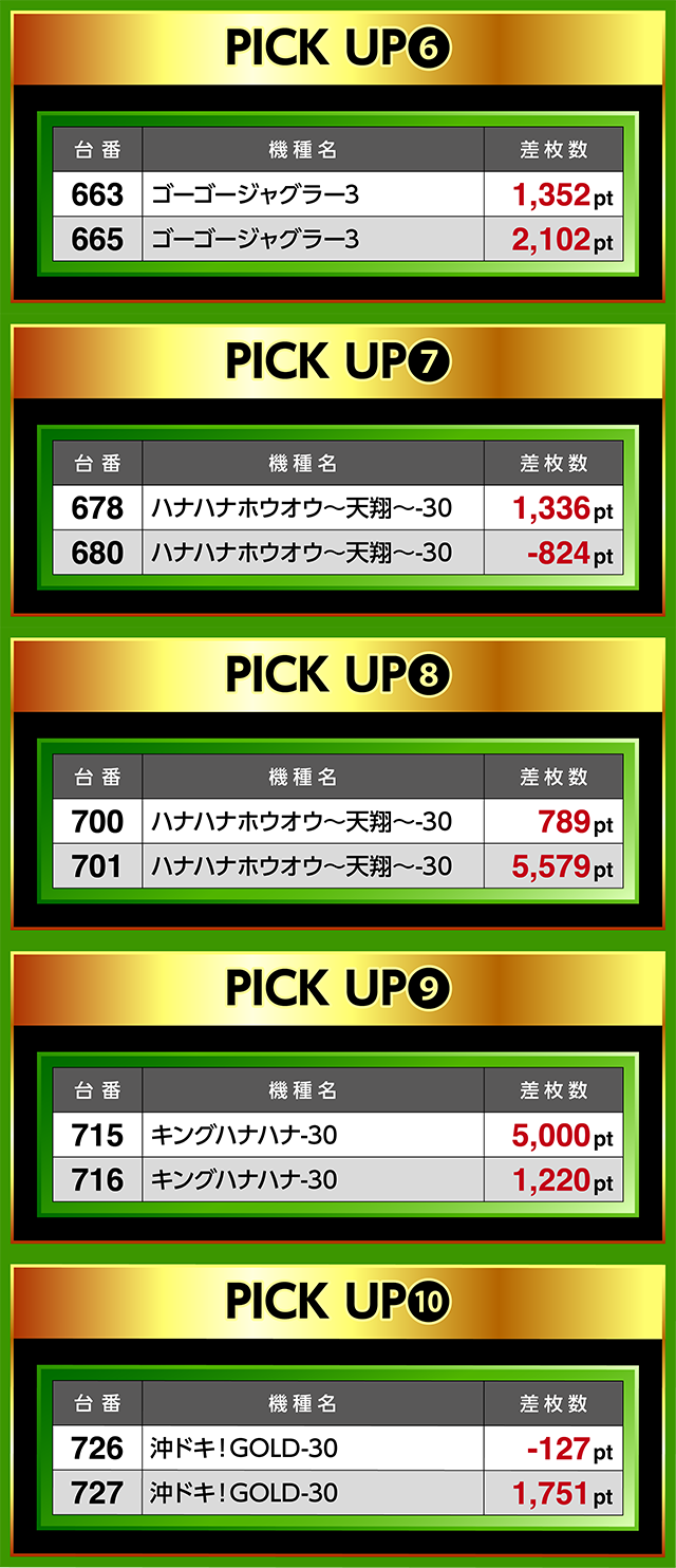 700番台と701番台の「ハナハナホウオウ~天翔~-30」はどちらもプラスで、701番台は5,500pt超。