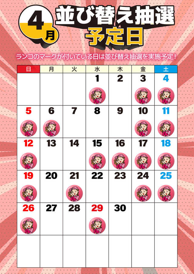 1位 3月29日(日) 2位 3月30日(月) 3位 3月31日(火)