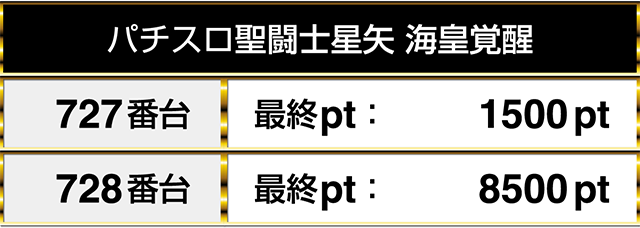 2台設置の『パチスロ聖闘士星矢 海皇覚醒』はどちらの台も1000pt以上であり、1台は8000ptオーバー!!