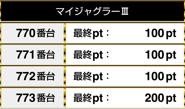 最終的には2箇所にプラスptが並び、なかには2000ptを上回る台もあった。