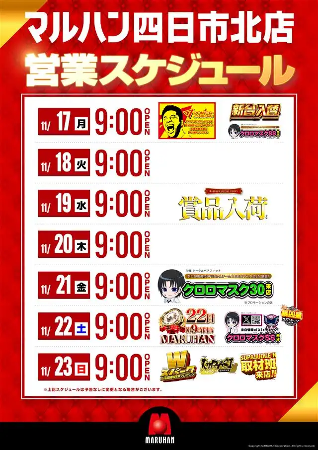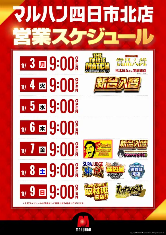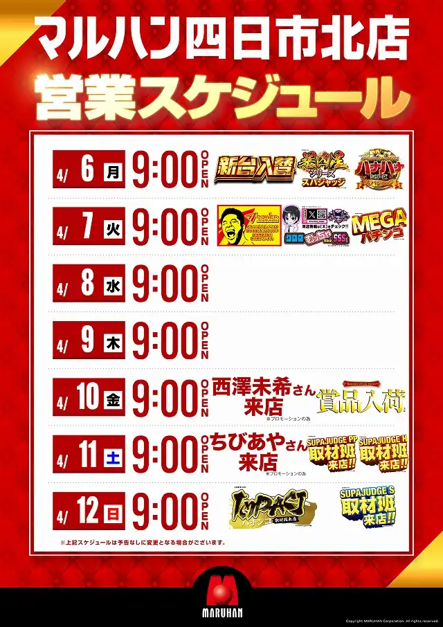 マルハン四日市北店:21日〔火〕新台入替(予定)
