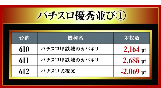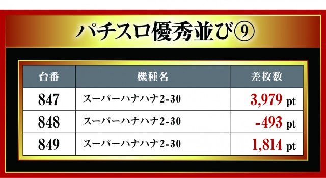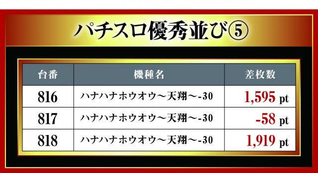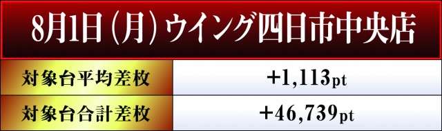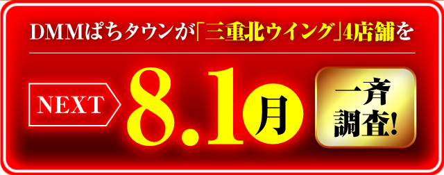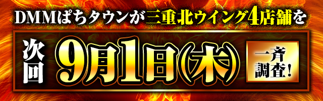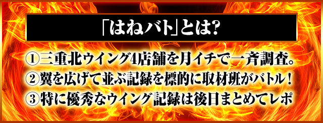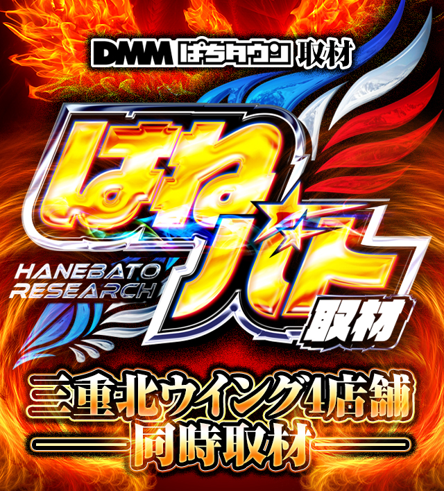 三重北ウイング4店舗を徹底取材する「はねバト!」。DMMぱちタウン取材班は当日のパチスロコーナーにある3台並びでの優秀台に着目した。栄えある8月1日に実施された「四日市中央店」の初回は『ハナハナホウオウ~天翔~-30』を中心とする数多くの優秀台を確認! 『パチスロコードギアス 反逆のルルーシュ3』や今をときめく6.5号機の『パチスロ甲鉄城のカバネリ』、『パチスロ犬夜叉』も侮れない差枚数となった。今後も毎月1日に実施される本取材に注目だ!