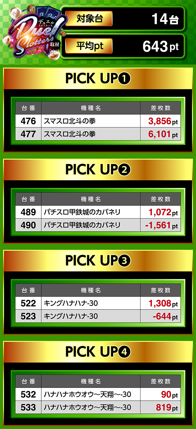 9/8・「PICK UP機種」~4,800ptオーバーを確認!