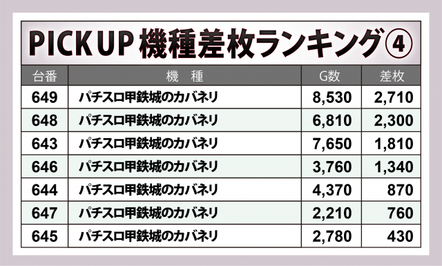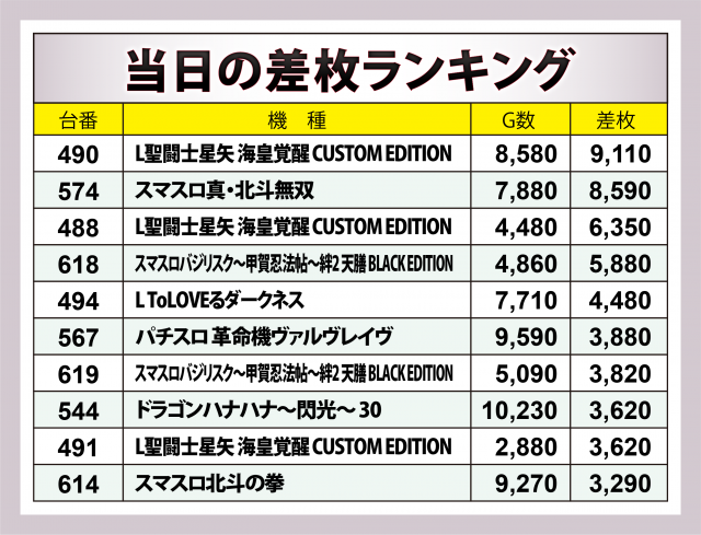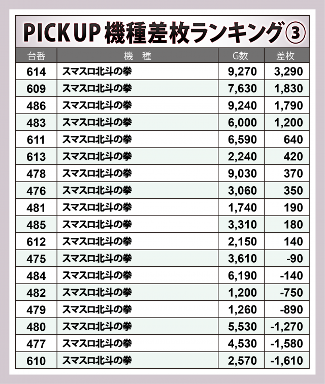 ※差枚数順に掲載しています。