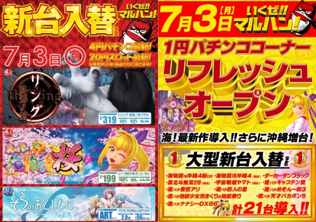 3日(月)①ぱちリフレッシュオープン&大型新台入替!!