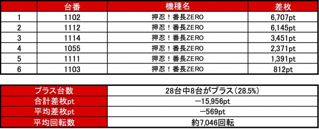 押忍!番長ZEROから差枚6千pt超えが複数台出現!