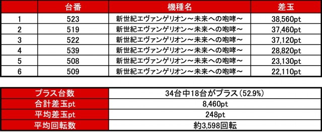 34台設置のエヴァは総差玉プラスの安定感を披露!