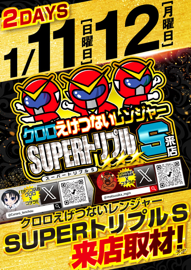 明日☆クワーマン☆さん実践来店8:30~並び替え抽選!
