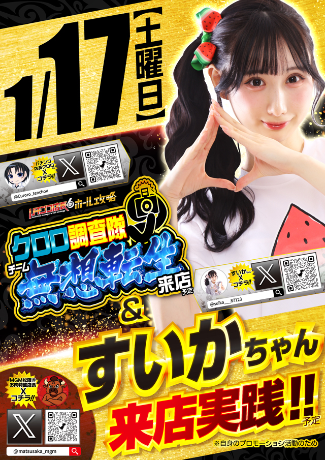 明日☆すいかさん☆初!!実践来店8:30~並び替え抽選!
