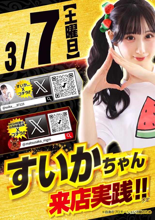 明日☆すいかちゃん☆実践来店8:30~並替抽選!