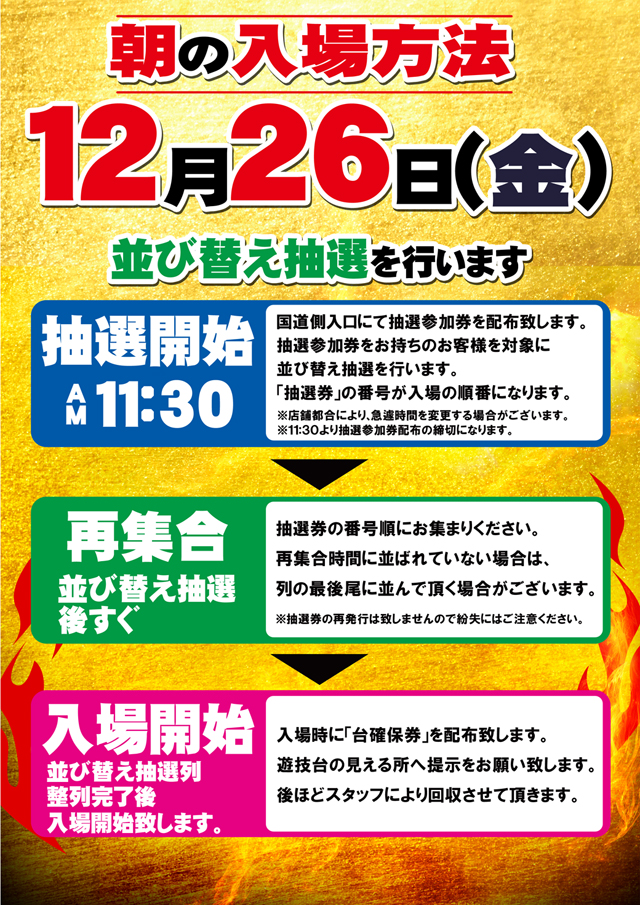 本日朝8:30~並び替え抽選‼朝9時開店‼
