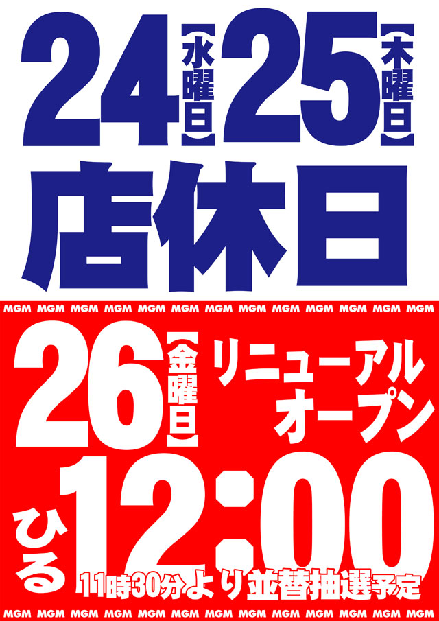 明日☆リニューアルオープン☆スロット大増台!昼12時開店!!