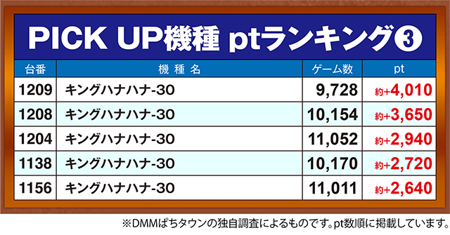 「キングハナハナ-30」は、多くの台が約+2,000ptオーバー。