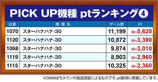 「スターハナハナ-30」では、1070番台が約+5,620pt!
