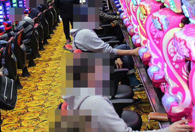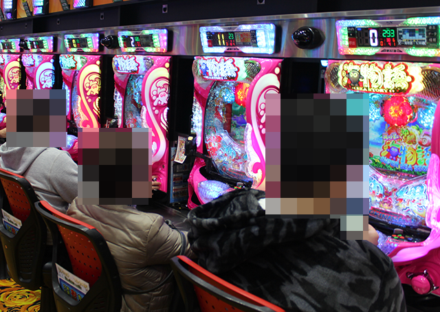 パチンココーナーには、老若男女を問わずにさまざまなプレイヤーが集合。