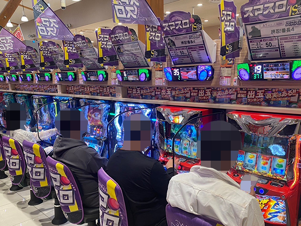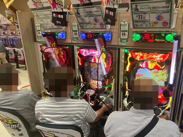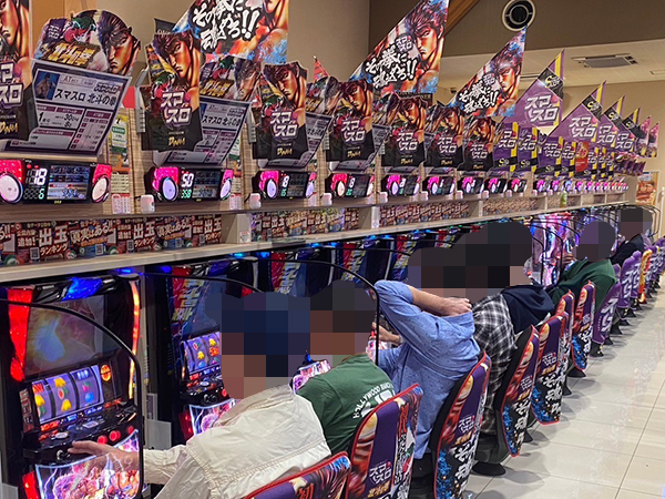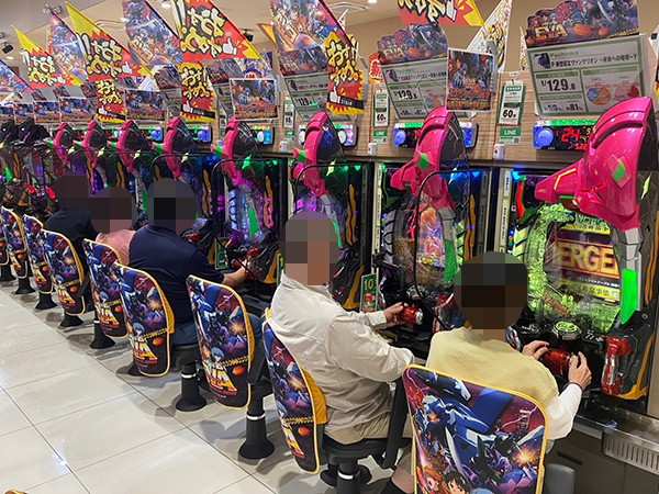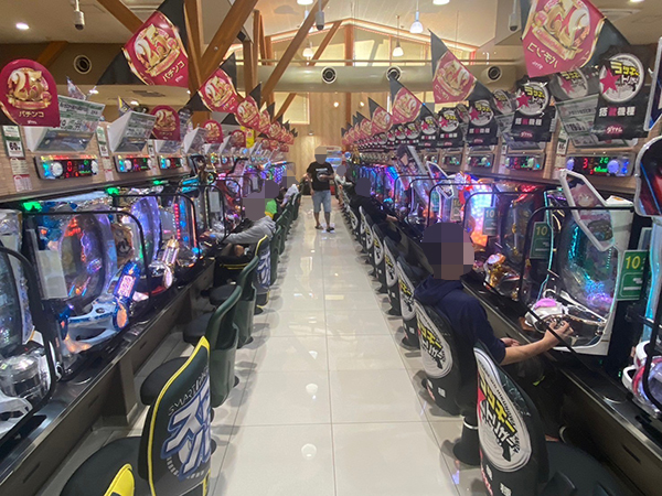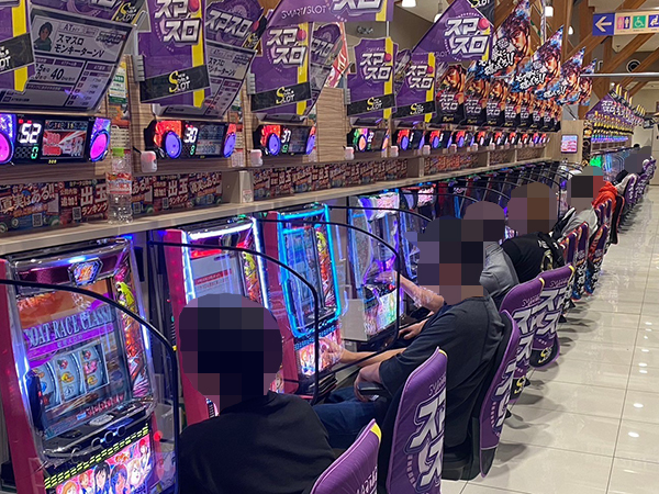 取材時は既に多くのプレイヤーであふれており、パチンコ・パチスロを問わず楽しげな表情でいっぱいだった。