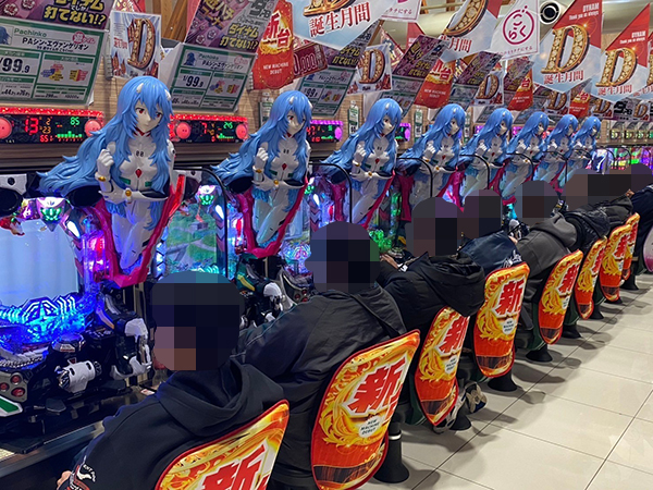 14時ごろの1円パチンコを見ると「PAシン・エヴァンゲリオン 99 遊タイム付 ごらくver.」といった自社開発機が盛況の様子。華麗なパフォーマンスを披露するプレイヤーを多数目撃している。