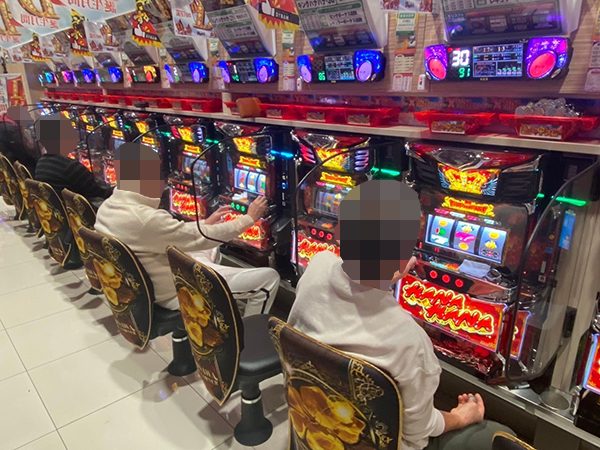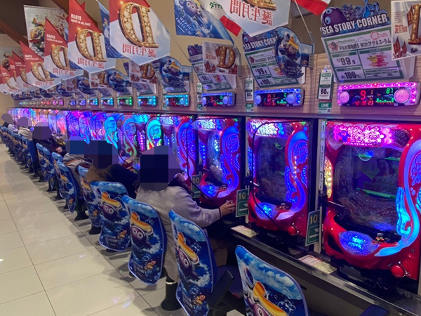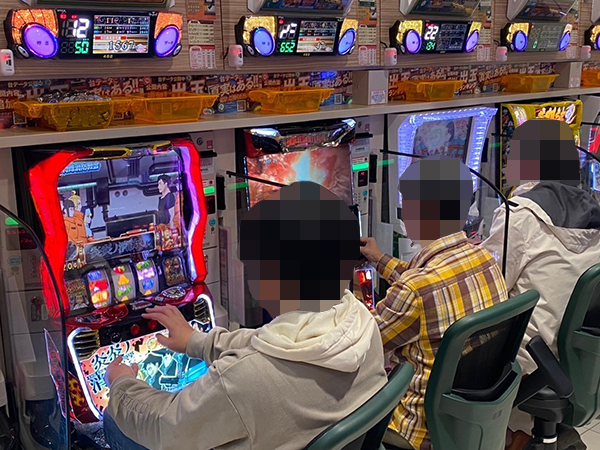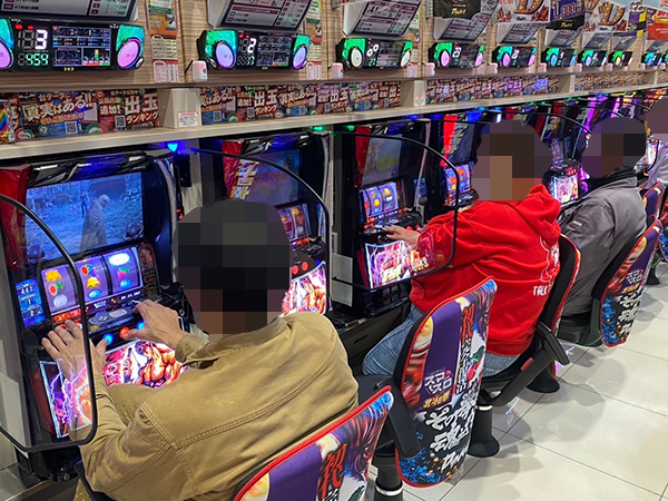 取材時は既に多くのプレイヤーであふれており、パチンコ・パチスロを問わず楽しげな表情でいっぱいだった。