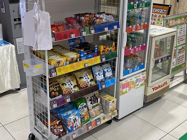 景品コーナーにはドリンク類やお菓子など多彩なアイテムが並んでおり、プレイヤーたちの興味を引いていた。