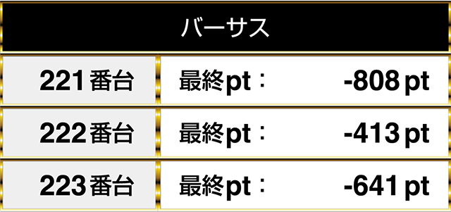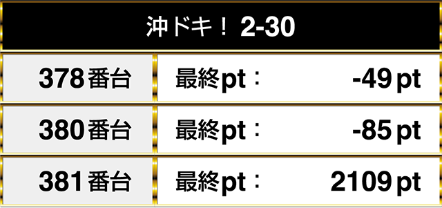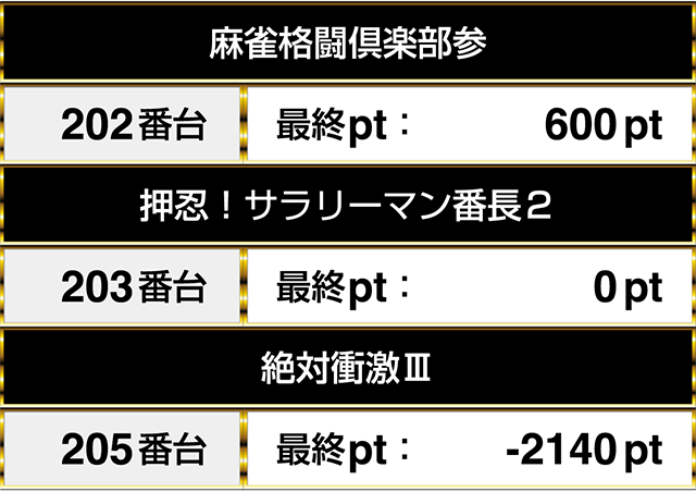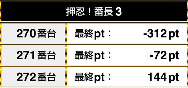 272番台がプラスptを記録した『押忍!番長3』は総ゲーム数が少なく、最終ptに差が少ない。