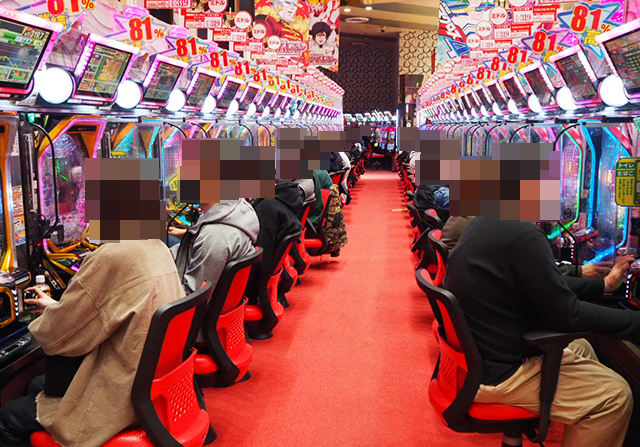 三重県鈴鹿市にあり、1200台以上の遊技台が設置されている大型のホールだ。