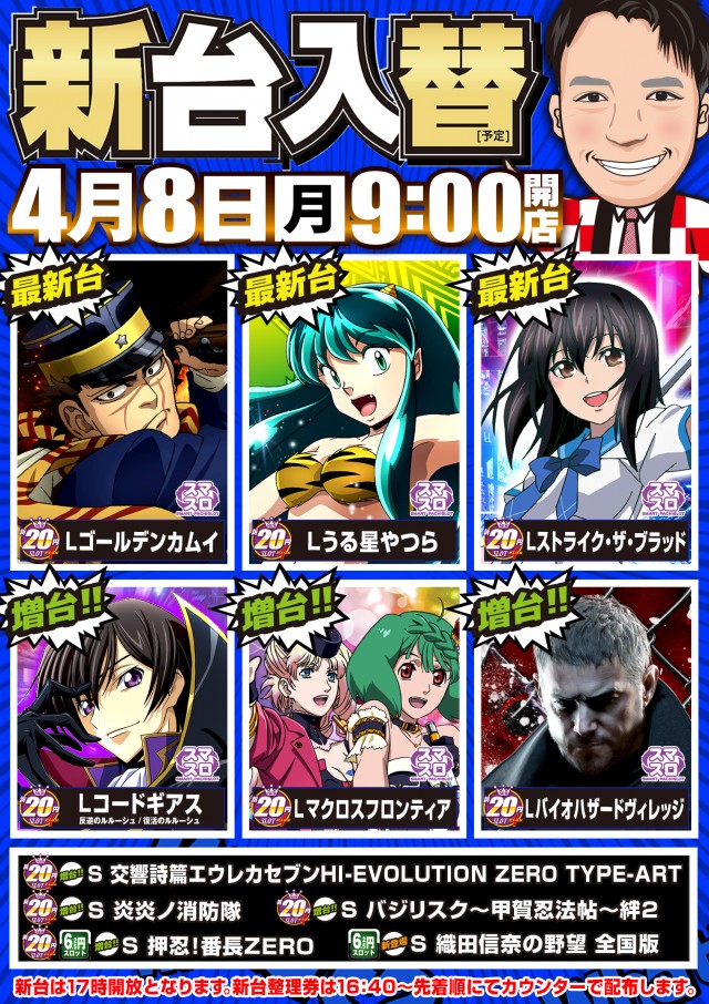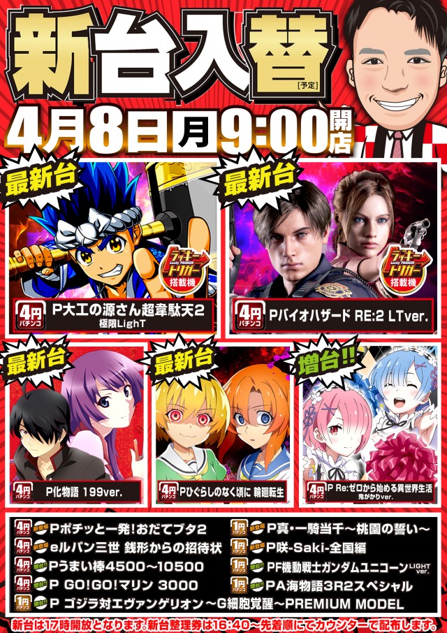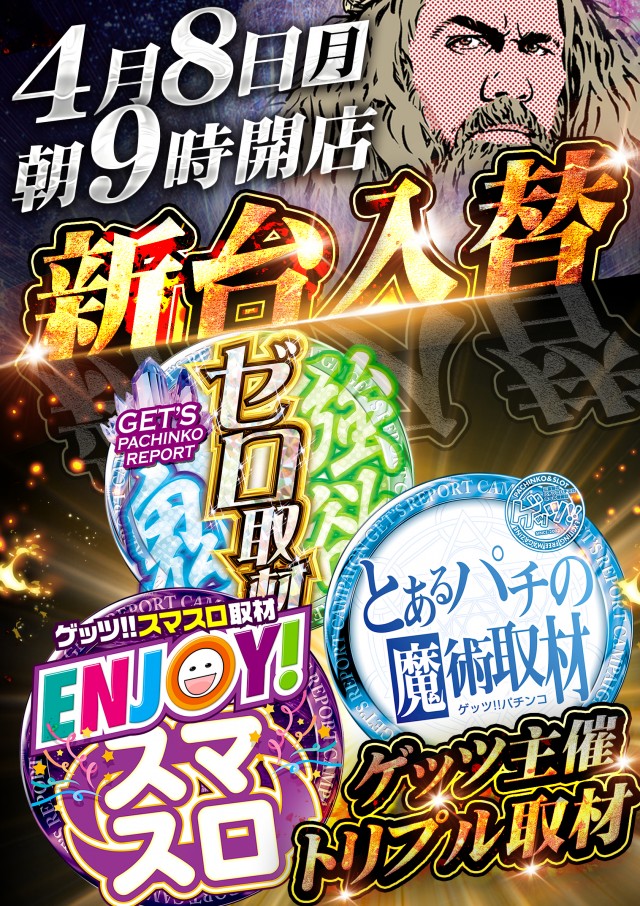 4月8日【月】朝9時開店!新台入替予定&ゲッツトリプル取材!
