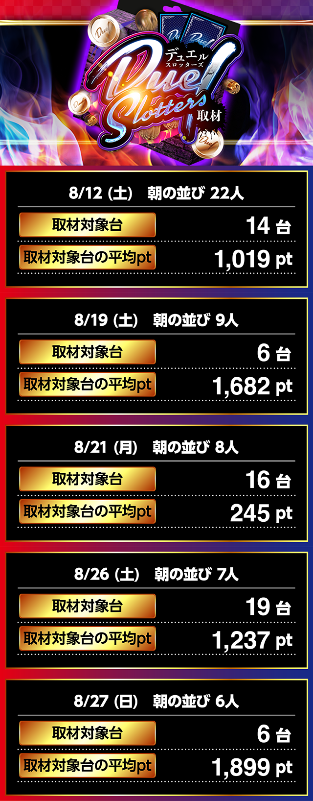 8/27「機軸」カード発見…。平均ptはどの機種もプラス!