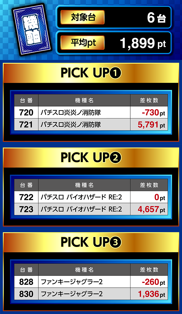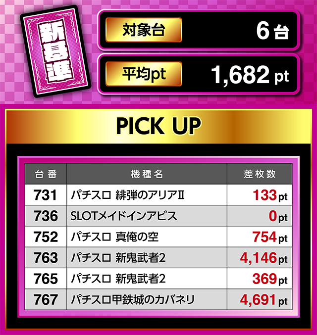 2,000ptクラスがあり、1台あたりの平均ptはどの機種もプラスとなった。